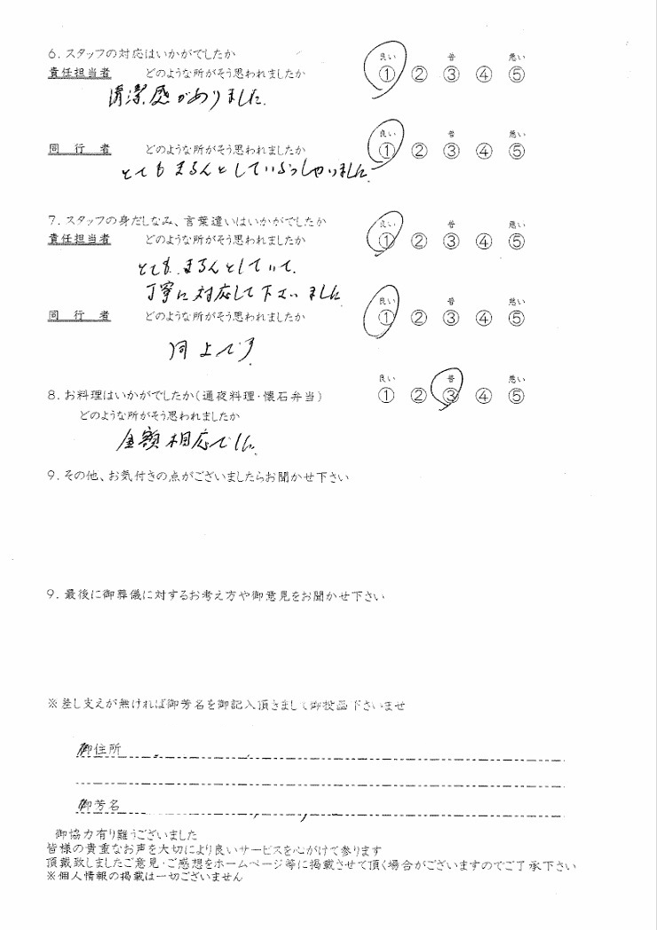 はじめての経験でしたので、すべてよくわかるように説明してくださいました。式の流れも時間の配分も良かったです。